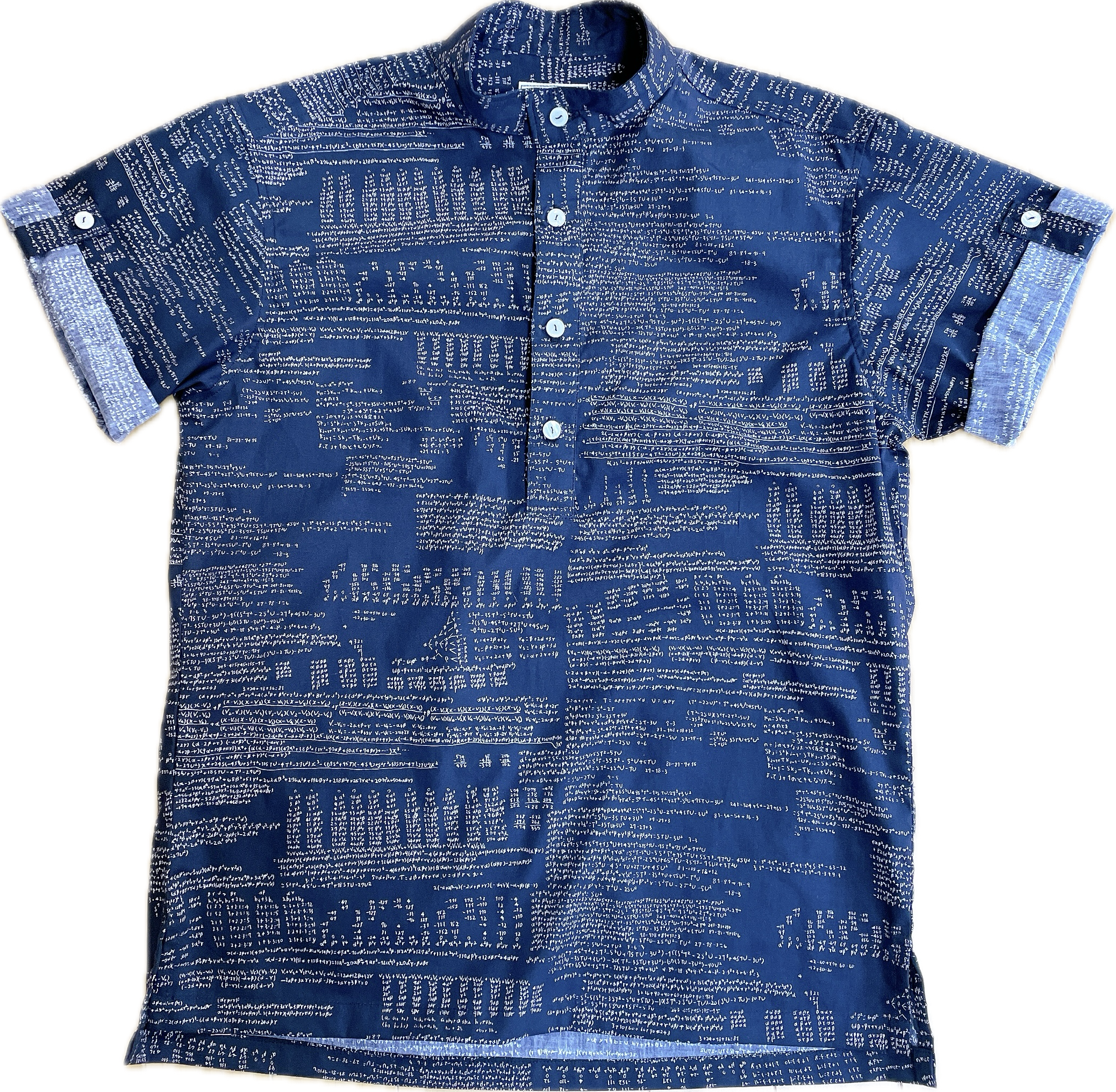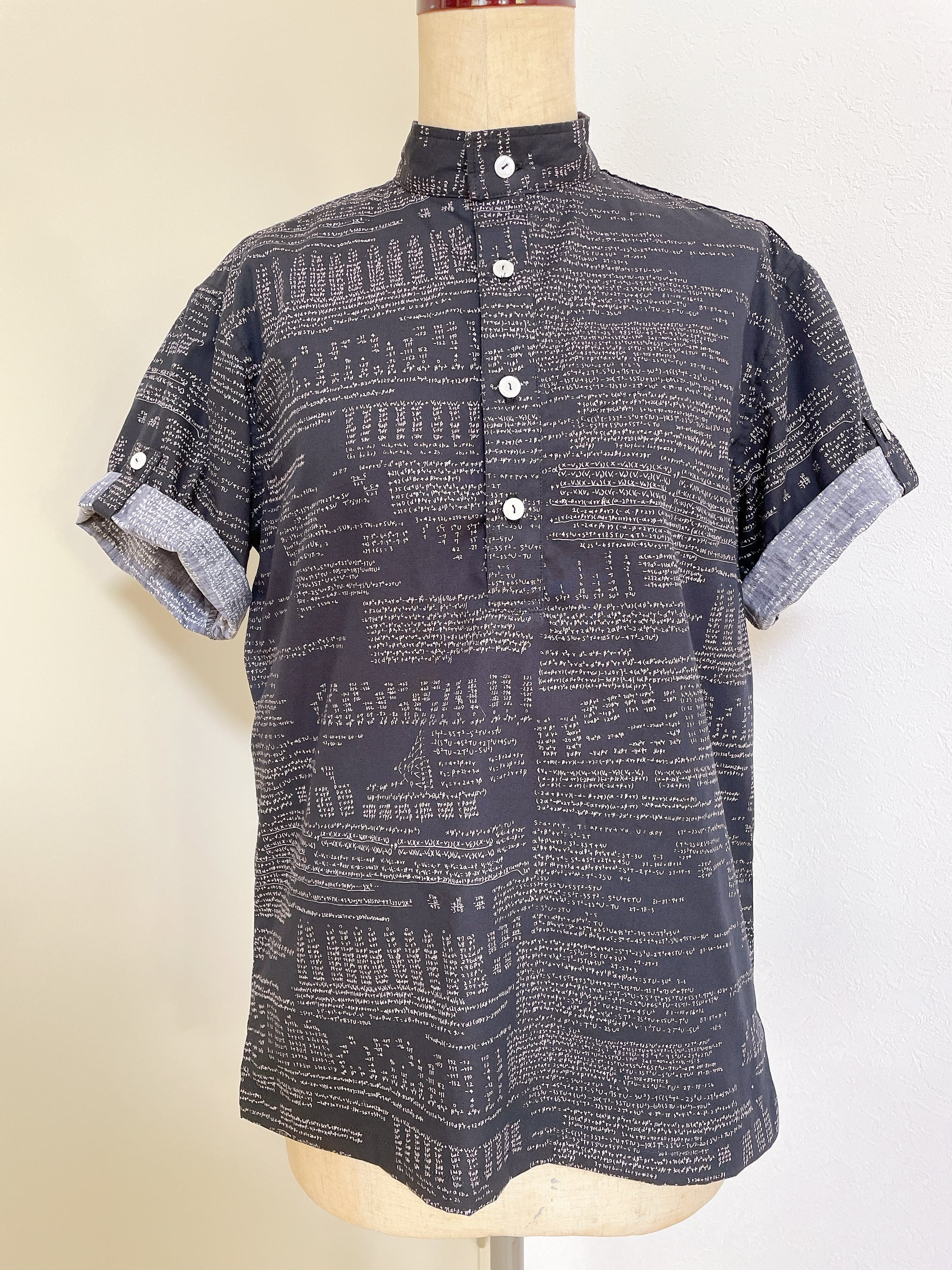 文様回路ロールアップ半袖シャツ・*:.。..。.:*・゜ブラック・*:.。..。.:*・゜